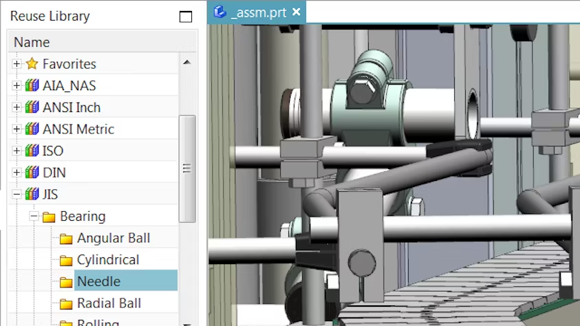 在企业基础上查找可重复使用的知识。NX 提供了一个丰富的知识库,让您随时随地都能重复使用:可重复使用的设计、标准零件、设计特征、符号、2D 截面、轮廓、曲线、形状和产品模板。您可以快速找到所需的内容,并将对象拖放到您的设计中。